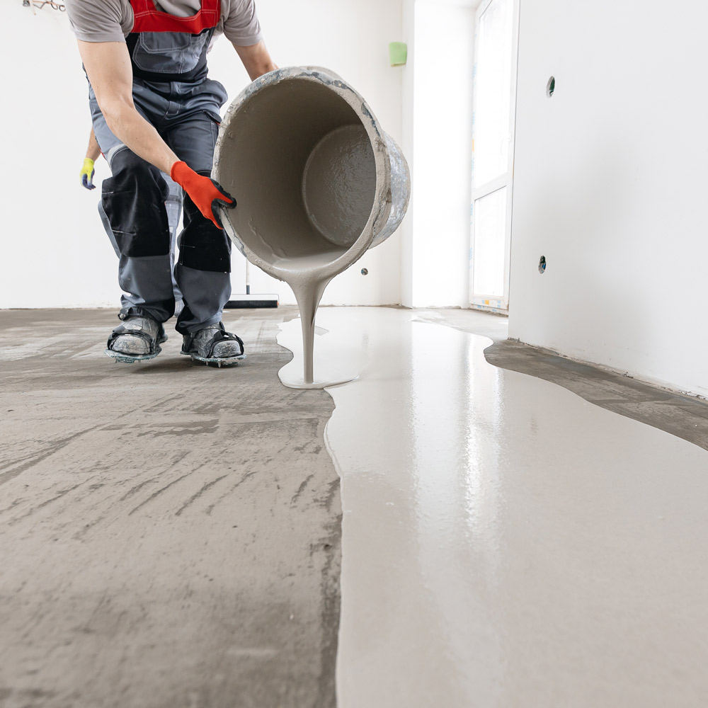 Создания верхнего слоя пола, такого как стяжка, плитка или ковровое покрытие.
